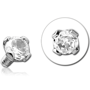 14 KARAT GOLD WHITE PRONG SET JEWEL FOR INTERNALLY THREADED PINS
