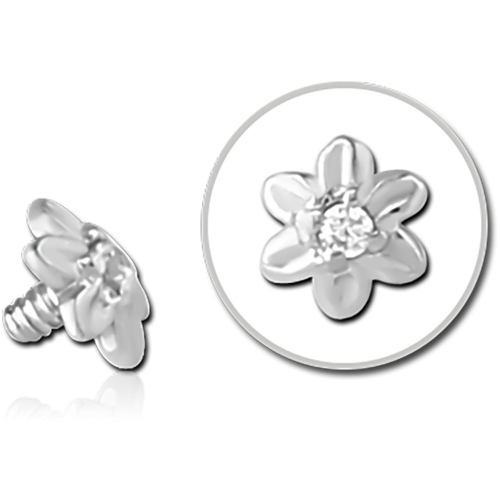 14 KARAT GOLD WHITE JEWELED FOR 1.2MM INTERNALLY THREADED PINS - FLOWER
