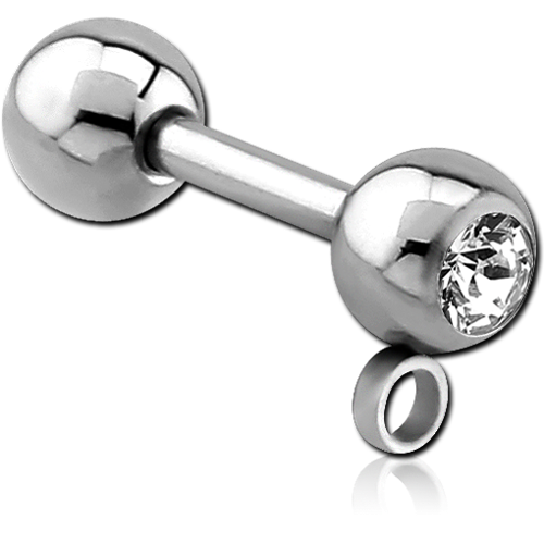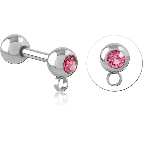 SURGICAL STEEL GRADE 316L VALUE CRYSTAL JEWELED MICRO BARBELL WITH HORIZONTAL HOOP
