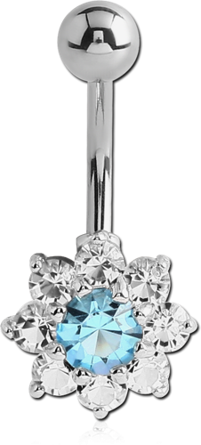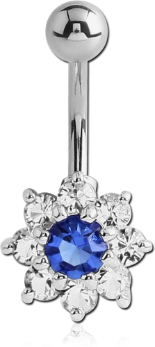RHODIUM PLATED BASE METAL JEWELED FLOWER NAVEL BANANA