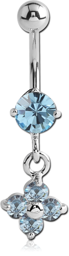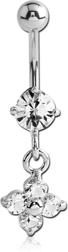 RHODIUM PLATED BASE METAL JEWELED NAVEL BANANA WITH FLOWER CHARM