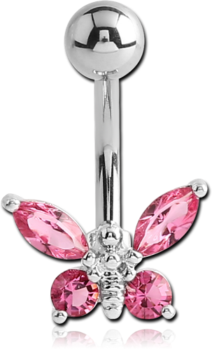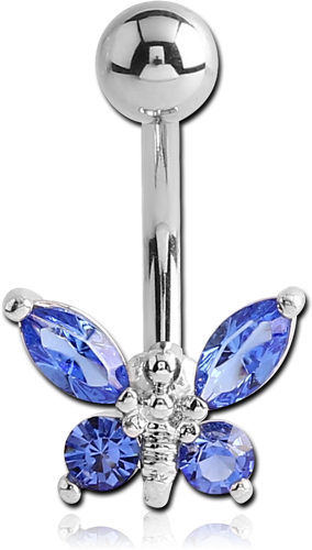 RHODIUM PLATED BASE METAL JEWELED BUTTERFLY NAVEL BANANA