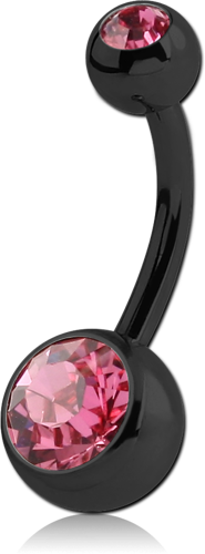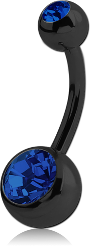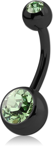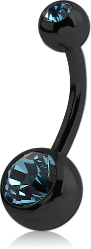 BLACK PVD COATED SURGICAL STEEL GRADE 316L DOUBLE JEWELED NAVEL BANANA