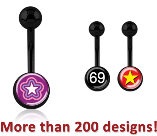BLACK PVD COATED SURGICAL STEEL GRADE 316L PICTURE NAVEL BANANA