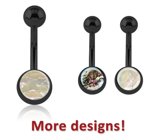 BLACK PVD COATED SURGICAL STEEL GRADE 316L ORGANIC SYNTHETIC MOTHER OF PEARL NAVEL BANANA
