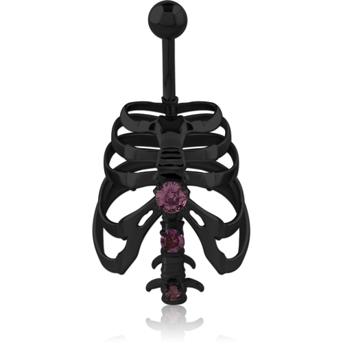 BLACK PVD COATED BASE METAL JEWELED NAVEL BANANA