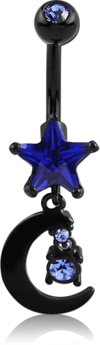 BLACK PVD COATED DOUBLE JEWELED STAR NAVEL BANANA WITH MOON CHARM