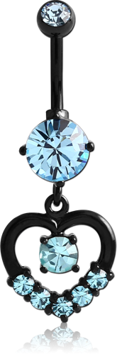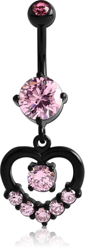 BLACK PVD COATED DOUBLE PREMIUM CRYSTALS JEWELED ROUND NAVEL BANANA WITH HEART CHARM