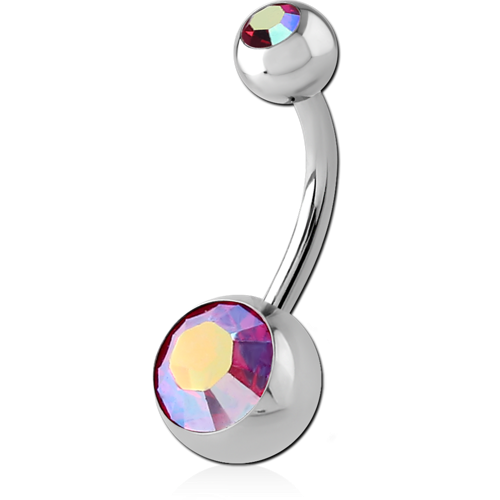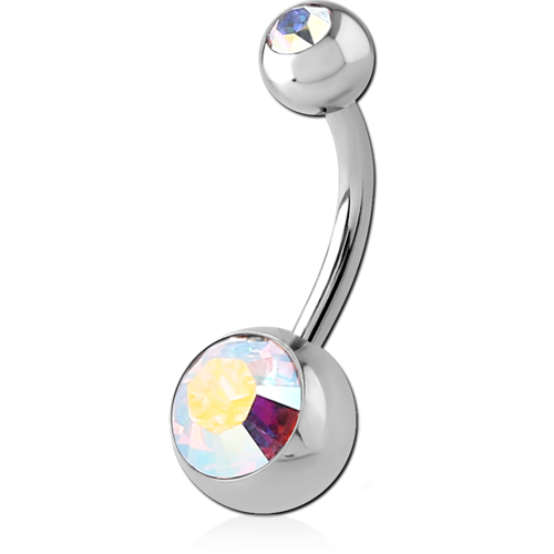 SURGICAL STEEL GRADE 316L DOUBLE PREMIUM CRYSTALS JEWELED NAVEL BANANA
