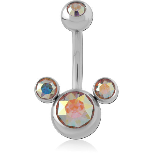 SURGICAL STEEL GRADE 316L DOUBLE PREMIUM CRYSTALS JEWELED NAVEL BANANA WITH JEWELED DISC