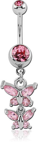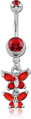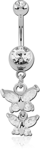 SURGICAL STEEL GRADE 316L DOUBLE JEWELED NAVEL BANANA WITH BUTTERFLY CHARM
