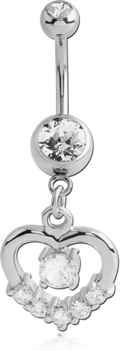 SURGICAL STEEL GRADE 316L DOUBLE JEWELED NAVEL BANANA WITH HEART CHARM