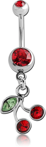 SURGICAL STEEL GRADE 316L DOUBLE JEWELED NAVEL BANANA WITH CHERRIES CHARM