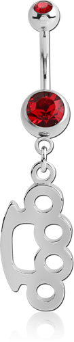 SURGICAL STEEL GRADE 316L DOUBLE JEWELED NAVEL BANANA WITH BASE METAL KNUCKLES CHARM