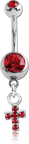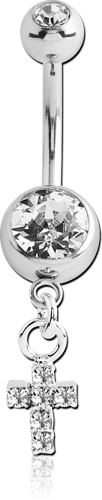 SURGICAL STEEL GRADE 316L DOUBLE JEWELED NAVEL BANANA WITH CROSS CHARM