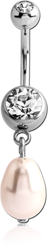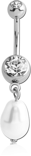 SURGICAL STEEL GRADE 316L DOUBLE JEWELED NAVEL BANANA WITH ORGANIC SYNTHETIC PEARL CHARM