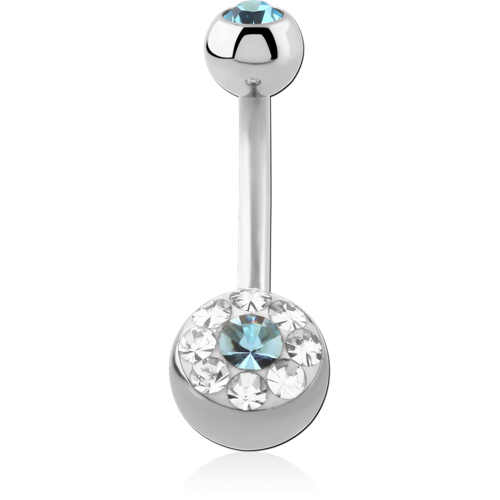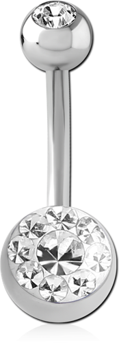 SURGICAL STEEL GRADE 316L VALUE CRYSTALINE DOUBLE JEWELED NAVEL BANANA