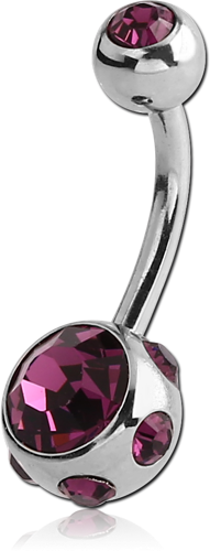 SURGICAL STEEL GRADE 316L DOUBLE VALUE JEWELED MULTI STONE NAVEL BANANA