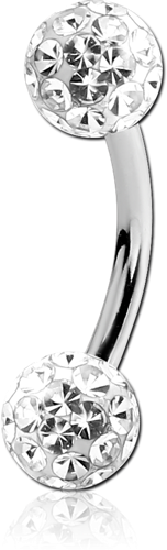 SURGICAL STEEL GRADE 316L CURVED BARBELL WITH EPOXY COATED CRYSTALINE JEWELED BALL