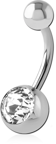 SURGICAL STEEL GRADE 316L FLAT STONE JEWELED NAVEL BANANA