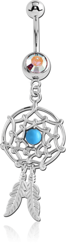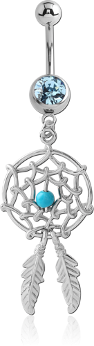 SURGICAL STEEL GRADE 316L JEWELED NAVEL BANANA WITH DREAMCATCHER FEATHERS CHARM