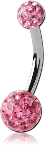 SURGICAL STEEL GRADE 316L DOUBLE EPOXY COATED CRYSTALINE JEWELED BALL NAVEL BANANA