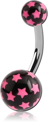 SURGICAL STEEL GRADE 316L DOUBLE ACRYLIC STARS PRINTED BALL NAVEL BANANA