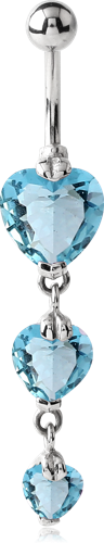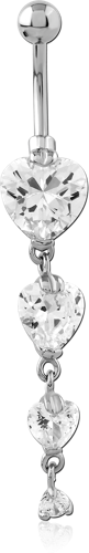 RHODIUM PLATED BASE METAL JEWELED NAVEL BANANA - TRIPPLE HEARTS