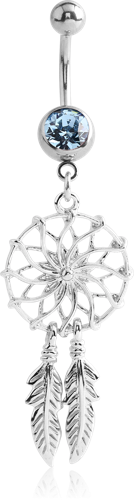 SURGICAL STEEL GRADE 316L JEWELED NAVEL BANANA WITH DANGLING CHARM - DREAMCATCHER FEATHER