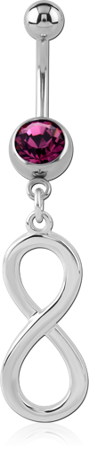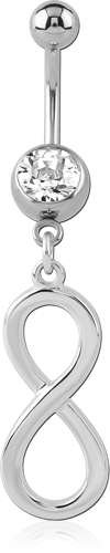 SURGICAL STEEL GRADE 316L JEWELED NAVEL BANANA WITH DANGLING CHARM - INFINITY