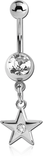 SURGICAL STEEL GRADE 316L JEWELED NAVEL BANANA WITH DANGLING CHARM - STAR