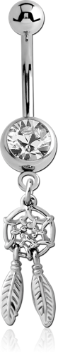 SURGICAL STEEL GRADE 316L JEWELED NAVEL BANANA WITH DANGLING CHARM - DREAM CATCHER