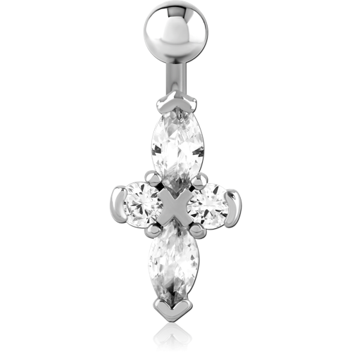 : SURGICAL STEEL GRADE 316L BANANA WITH RHODIUM PLATED BRASS PART