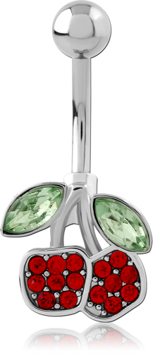 RHODIUM PLATED BASE METAL JEWELED NAVEL BANANA