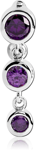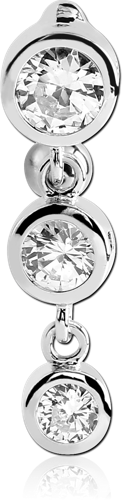 RHODIUM PLATED BASE METAL JEWELED REVERSE NAVEL BANANA - THREE BALLS