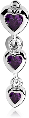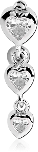 RHODIUM PLATED BASE METAL JEWELED REVERSE NAVEL BANANA - HEARTS