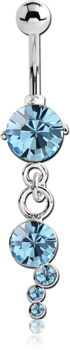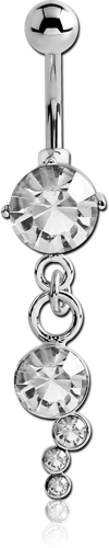 RHODIUM PLATED BASE METAL JEWELED NAVEL BANANA WITH DANGLING CHARM - ROUND