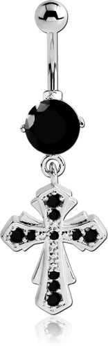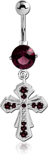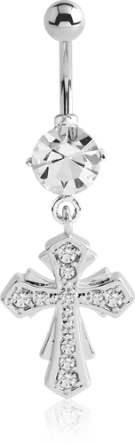 SURGICAL STEEL GRADE 316L JEWELED NAVEL BANANA WITH DANGLING CHARM - CROSS