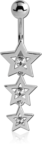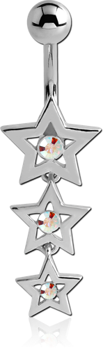 RHODIUM PLATED BASE METALD JEWELED STAR DANGLE NAVEL BANANA