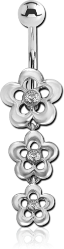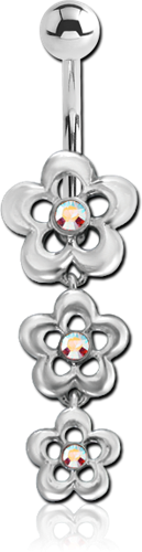 RHODIUM PLATED BASE METALD JEWELED FLOWER DANGLE NAVEL BANANA
