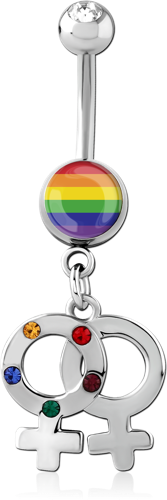 RHODIUM COATED DOUBLE JEWELED NAVEL BANANA