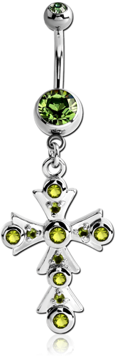 SURGICAL STEEL GRADE 316L DOUBLE JEWELED NAVEL BANANA WITH CROSS CHARM