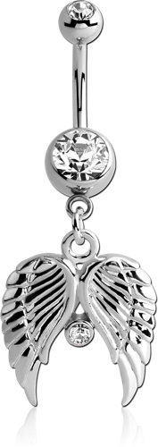 SURGICAL STEEL GRADE 316L DOUBLE JEWELED NAVEL BANANA WITH WINGS CHARM