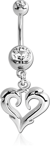 SURGICAL STEEL GRADE 316L DOUBLE JEWELED NAVEL BANANA WITH OPEN HEART CHARM