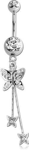 SURGICAL STEEL GRADE 316L DOUBLE JEWELED NAVEL BANANA WITH BUTTERFLY DANGLE CHARM