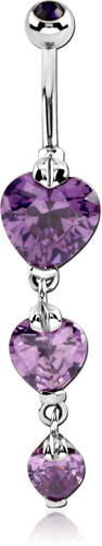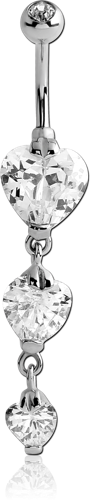SURGICAL STEEL GRADE 316L TRIPLE HEART CZ DANGLE BANANA WITH JEWELED BALL