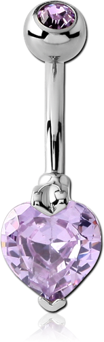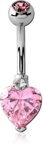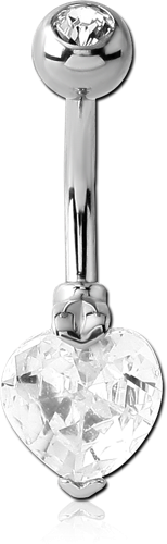 SURGICAL STEEL GRADE 316L HEART 8MM CZ DOUBLE JEWELED BANANA