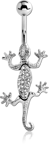SURGICAL STEEL GRADE 316L JEWELED MOVING LIZARD NAVEL BANANA