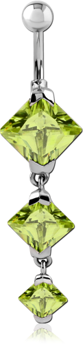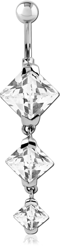 SURGICAL STEEL GRADE 316L TRIPLE SQUARE CZ JEWELED DANGLE NAVEL BANANA