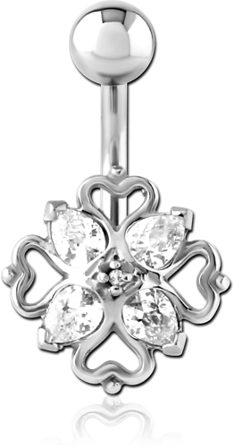 SURGICAL STEEL GRADE 316L JEWELED NAVEL BANANA - HEART FILIGREE